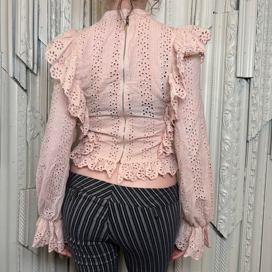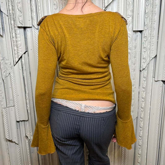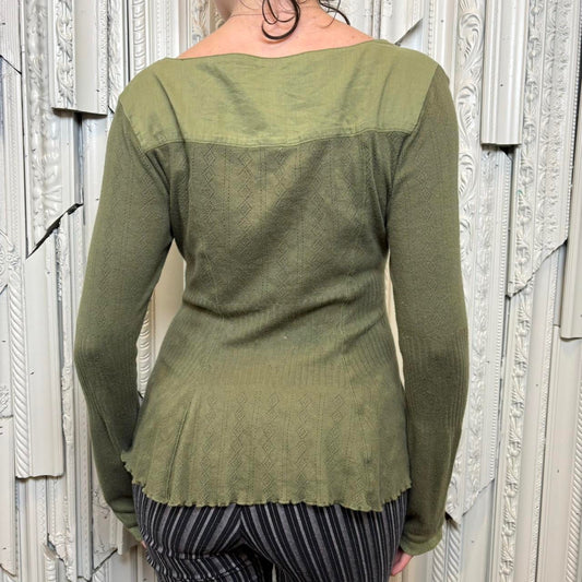 Tiny green square neck long sleeve milkmaid top with ruffle detailing