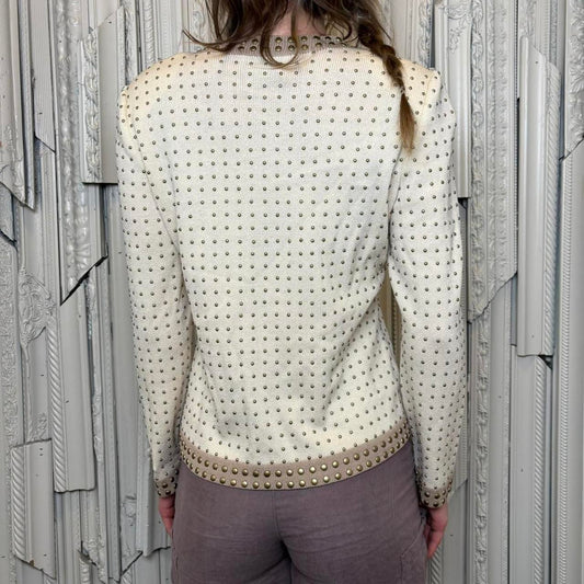 Toula deadstock wool/rayon blend cream and tan zip up jacket