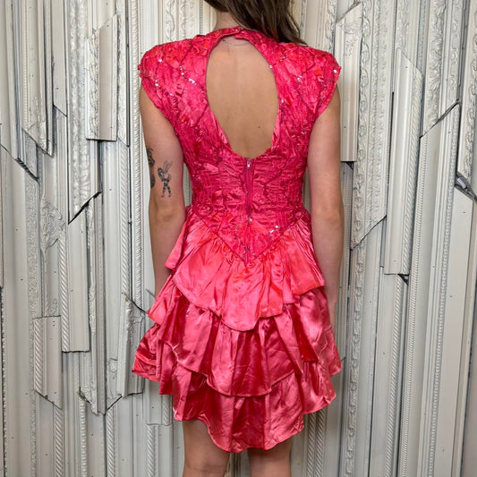 Zum Zum 80s hot pink lace and sequin detailed drop waist mini dress