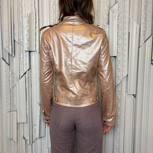 Yoki NY pearlescent pink snake zip up moto style jacket