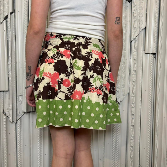 Y2k floral print and polka dot knee length pleated skirt
