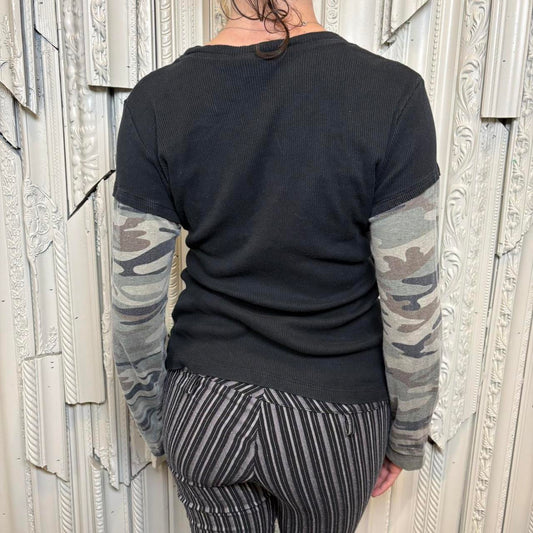 Big Flirt “Combat Cutie” black ribbed long sleeve with rhinestone star