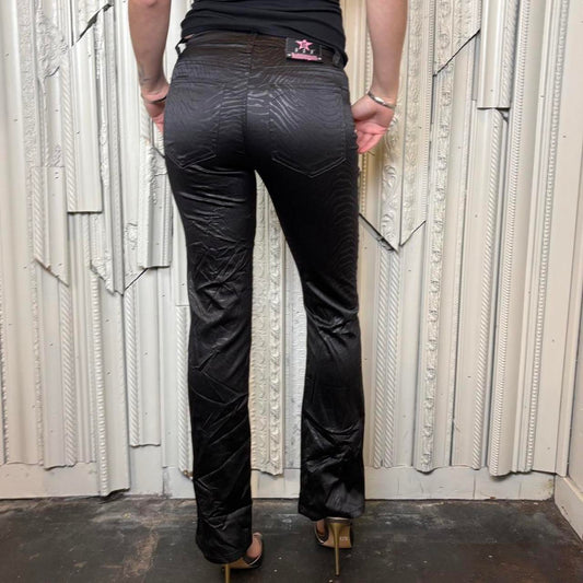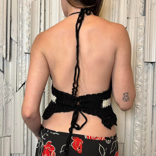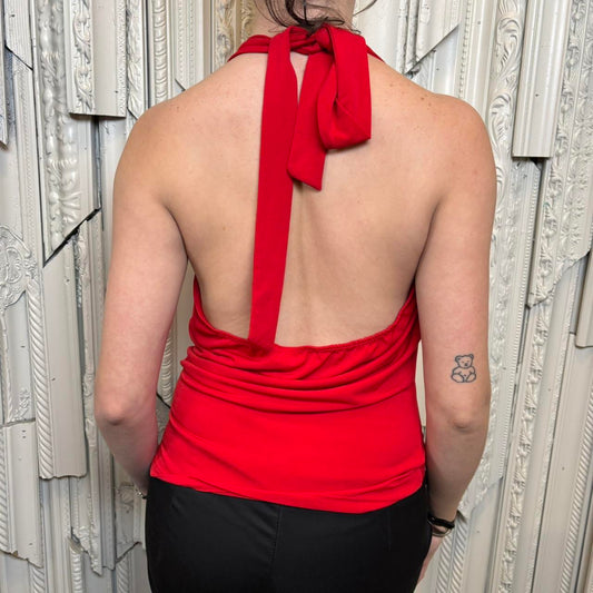 Bebe 90s 100% rayon black halter neck blouse with silver grommets