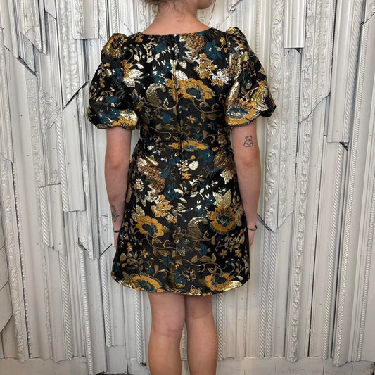 GB Girls black, gold and blue floral baby doll puff sleeve mini dress