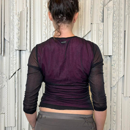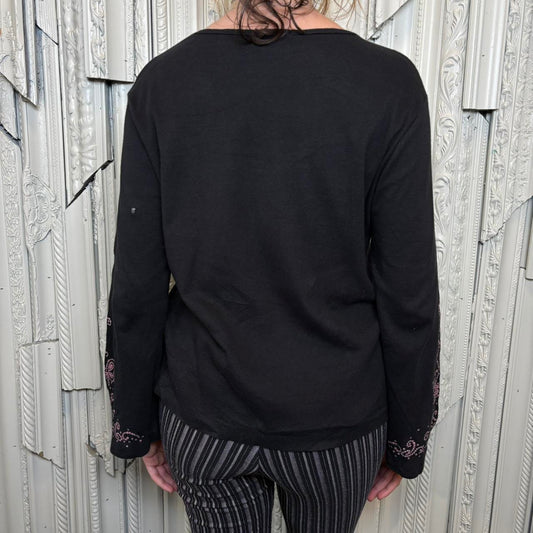 Fang black long sleeve tee with pink sequin butterfly on chest