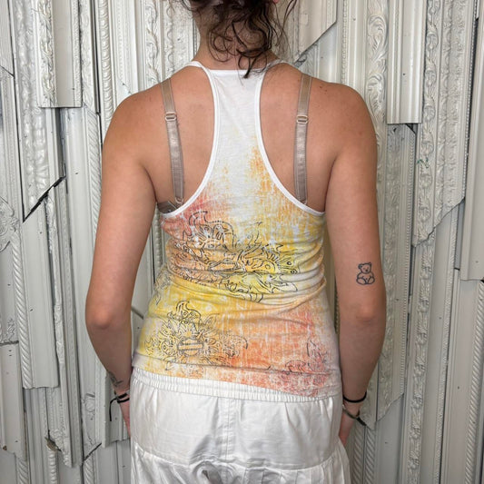 Harley Davidson yellow and white racerback tank top with “tribal print”