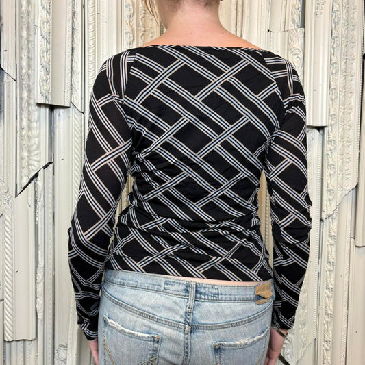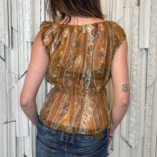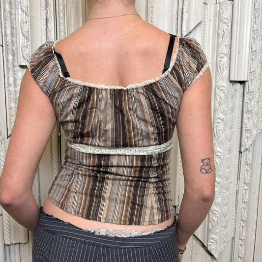 Heart Moon Star brown, blue and cream striped milkmaid top