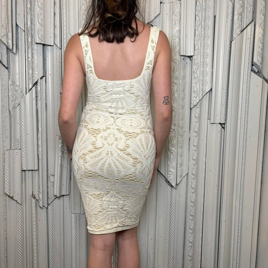 Intimately Free People cream “lace” cut out bodycon mini dress