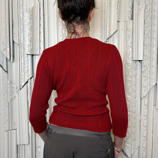 La Belle acrylic/spandex blend red v neck quarter sleeve knit top