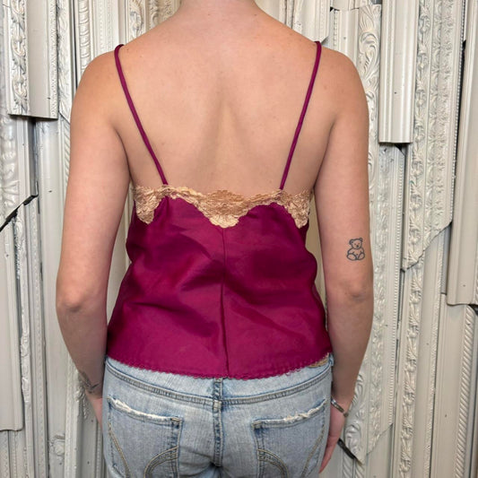 Lady Lynne vintage fuchsia and tan lingerie cami