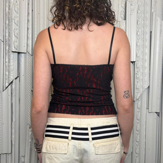 Kudu 90s/y2k red and black lace stretchy corseted tank top