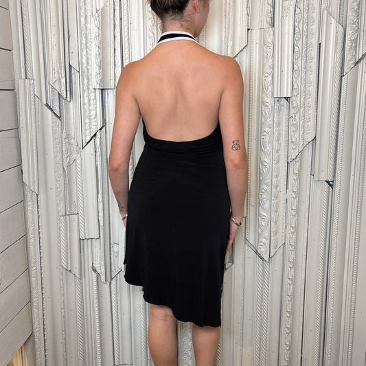 Lipstick black halter neck dress with asymmetrical hemline