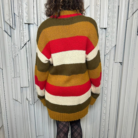Margo’s 100% acrylic multicolored “Aztec” print knit turtleneck mini dress