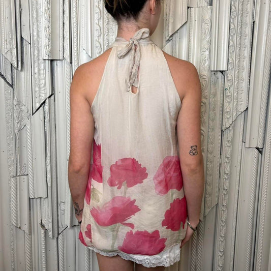 M cream double lined floral print high neck flowy top