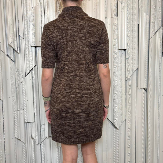 Love Lola brown and cream knit button down short sleeve sweater