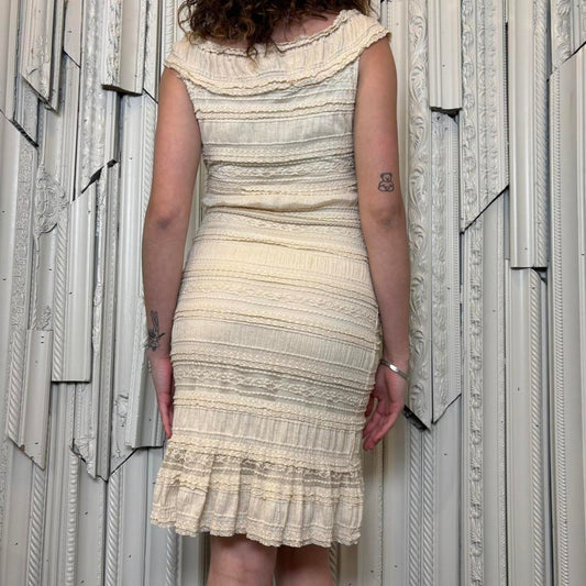 Max Studio bodycon cream layered ruffles and lace knee length dress