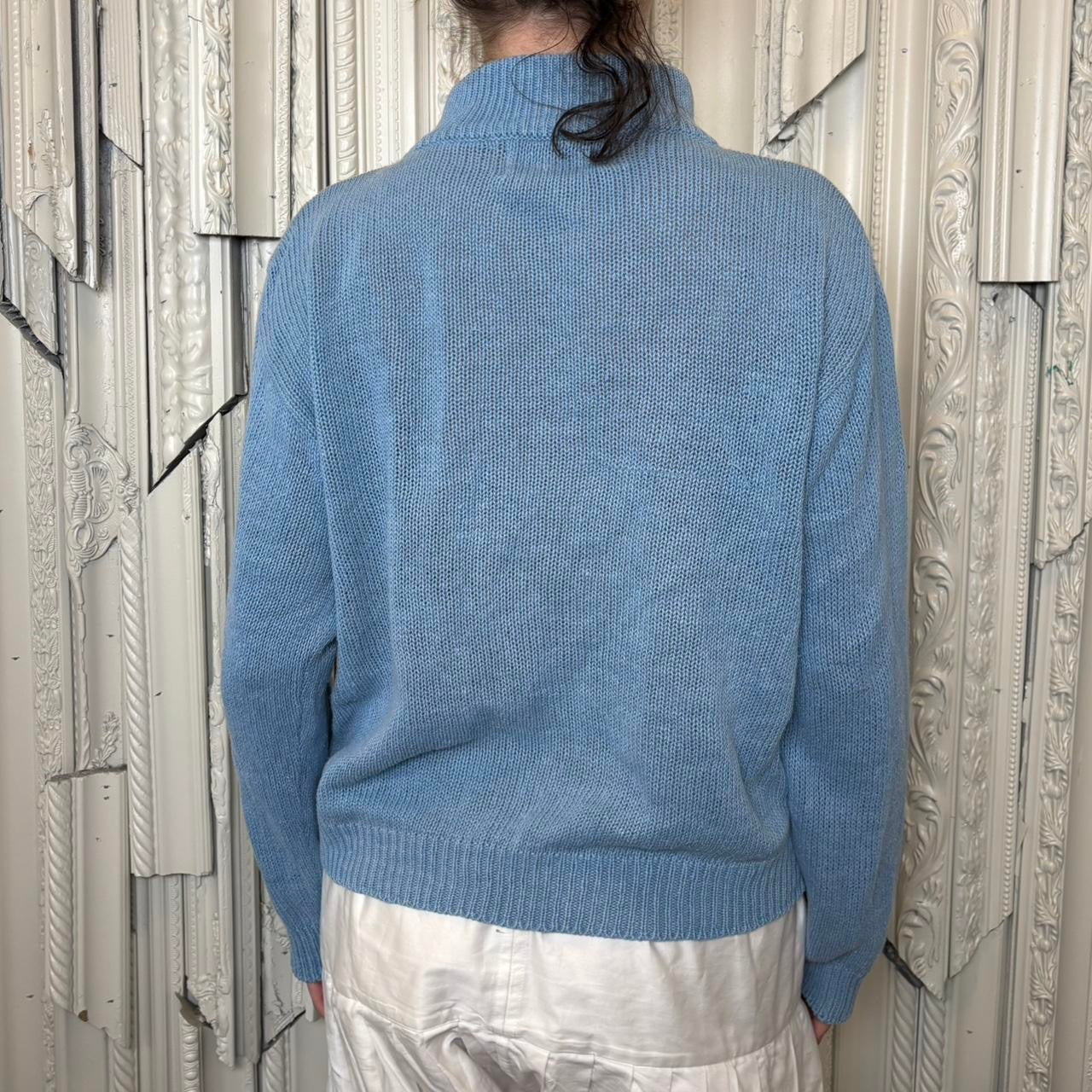 Dana Blake 80s baby blue button down mock neck sweater with side pocket. Sweater is in excellent condition. No contents or size tag, best fit for M/L. Model is 5’3 and wears size small.