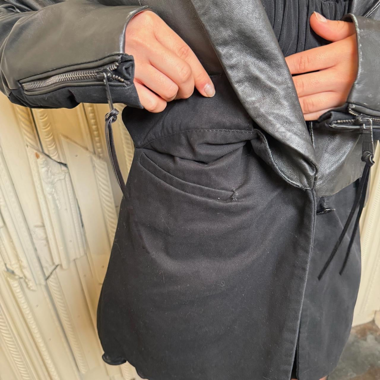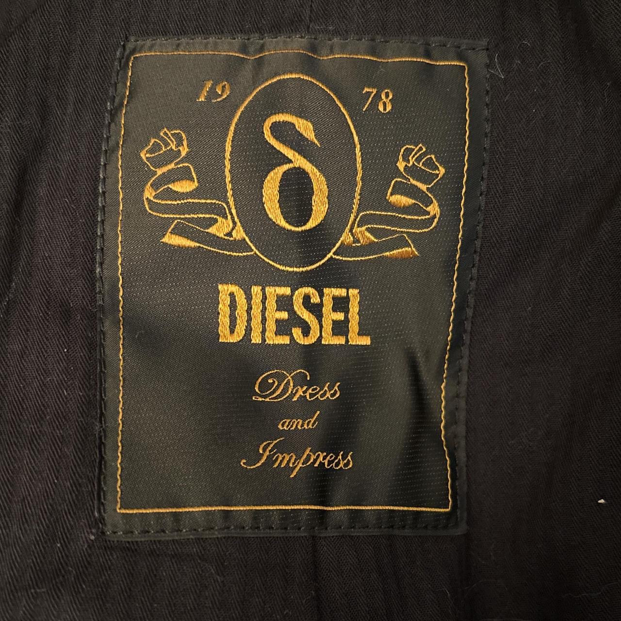 Diesel Dress and Impress faux leather and cotton blazer with zipper pocket detail, shoulder pads and single button closure. Jacket is in excellent condition.