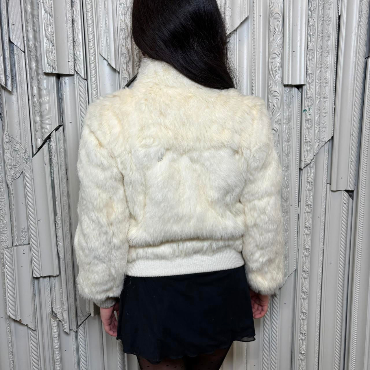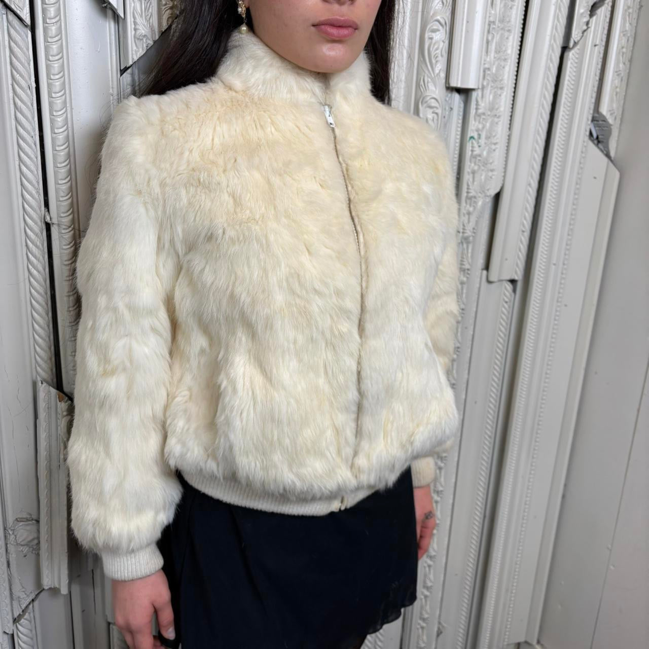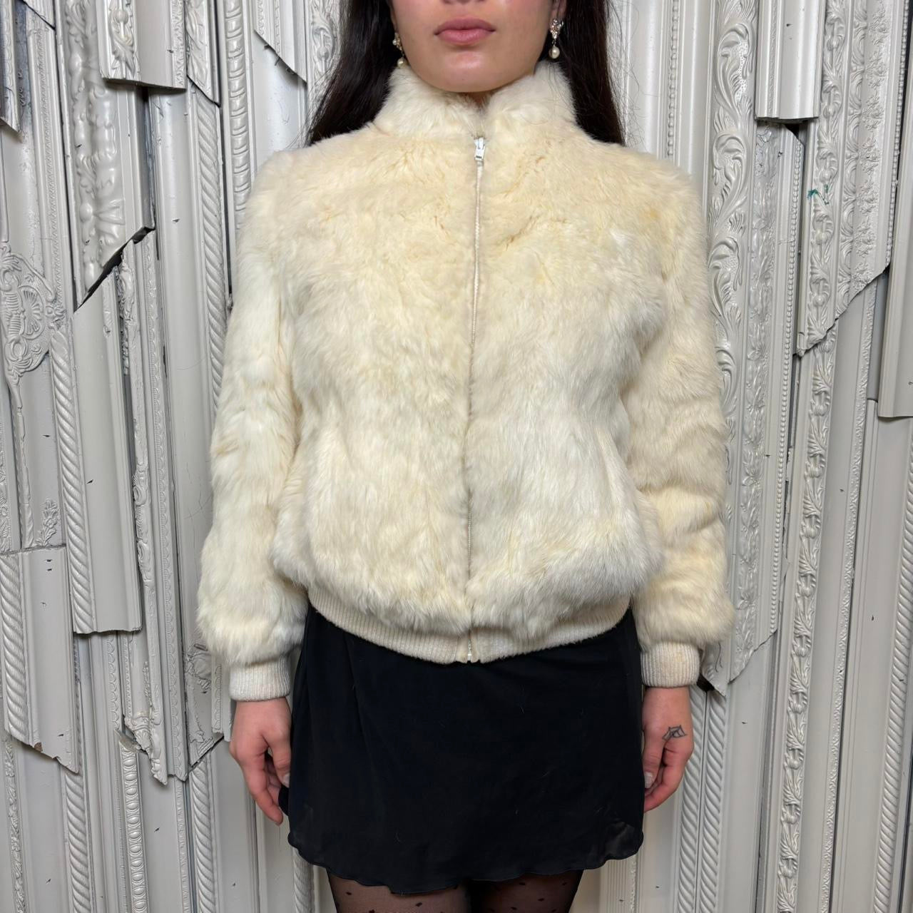 Rabbit fur (from France) zip up coat with pockets and knit hems