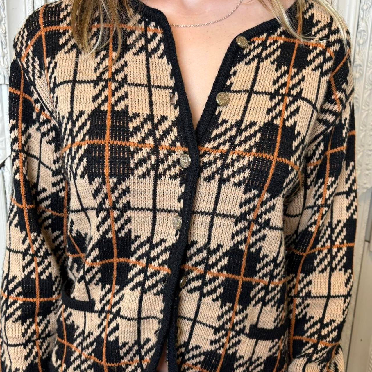 Tally Ho multicolored plaid cardigan with with gold buttons
